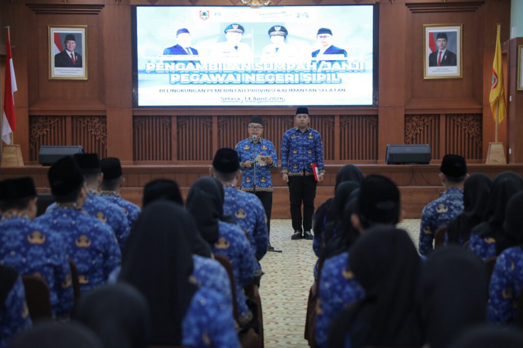 Banjarbaru – LENTERAKKALIMANTAN.NET Suasana khidmat menyelimuti Gedung Idham Chalid Banjarbaru saat sebanyak 129 aparatur resmi mengikrarkan sumpah/janji sebagai Aparatur Sipil Negara (ASN) di lingkungan Pemerintah Provinsi Kalimantan Selatan, Selasa (14/4/2026) siang.
